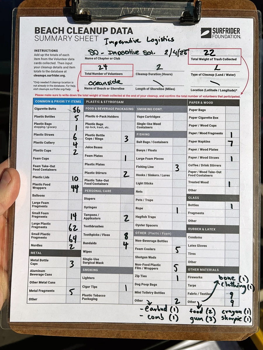 Our leadership team recently joined forces with the Surfrider Foundation for a beach cleanup at Oceanside, collecting 22 pounds of trash—much of it lightweight yet harmful plastic waste. Beyond removing debris, our efforts support Surfrider’s advocacy to reduce single-use plastics and protect marine ecosystems. The data we gathered helps drive policy change, making an impact far beyond the shoreline.